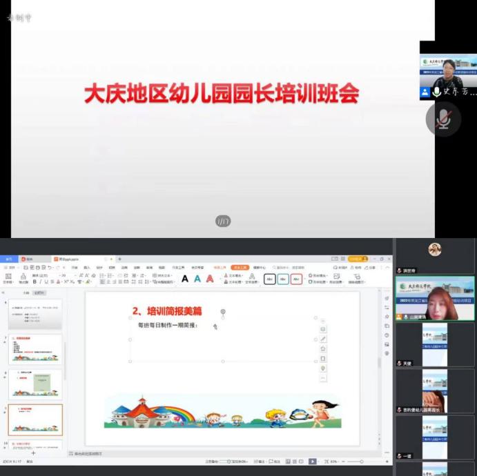 为加强学员对此次培训安排的了解,同时拉近学员之间距离,分别由三位班主任老师于线上解读培训方案,对学员们提出了三点期望,以德立身、专业立身、发展立身,希望各位学员不忘初心做一个有专业反思的实践者,努力创造出更多值得推广的大庆幼教经验。