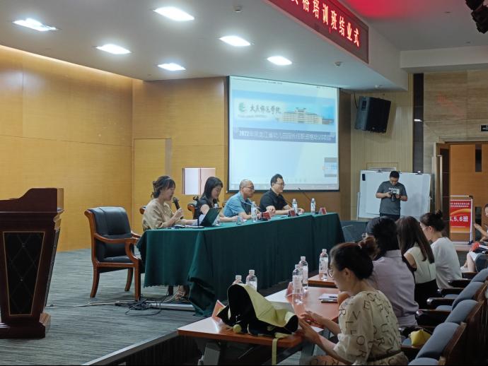 黑龙江省幼儿园园长任职资格第二期线下培训班结业典礼如期举办,大庆市教育局孟祥军主任、教育教育学院行政负责人张晓梅,教育教育学院张冬梅副教授,李峰副教授、学前教育实训中心主任黄春晨、学前教育系教师徐瑶、史东芳等如期出席,结业典礼由大庆师范学院教师教育学院张冬梅副教授主持。大庆市教育局领导指出此次培训制度健全、形式多样、内容丰富,全体学员建立学习共同体,在交流中共享共建,互帮互学,顺利实现预期培训目标,圆满地达到预期培训效果。随后由大庆师范学院教师教育学院行政负责人张晓梅讲话,指出此次培训进一步培养了一支懂业务、善管理、高素质的幼儿园管理队伍,为提升我区学前教育办学质量奠定了坚实的基础。结业典礼上培训班班主任代表徐瑶老师宣读学员的感谢信,表达了对专家团队感谢之情。最后两位优秀学员代表做了发言,对培训项目组致以崇高的敬意,表示今后要将所学的理论和实践经验运用到幼儿园日常实践中。