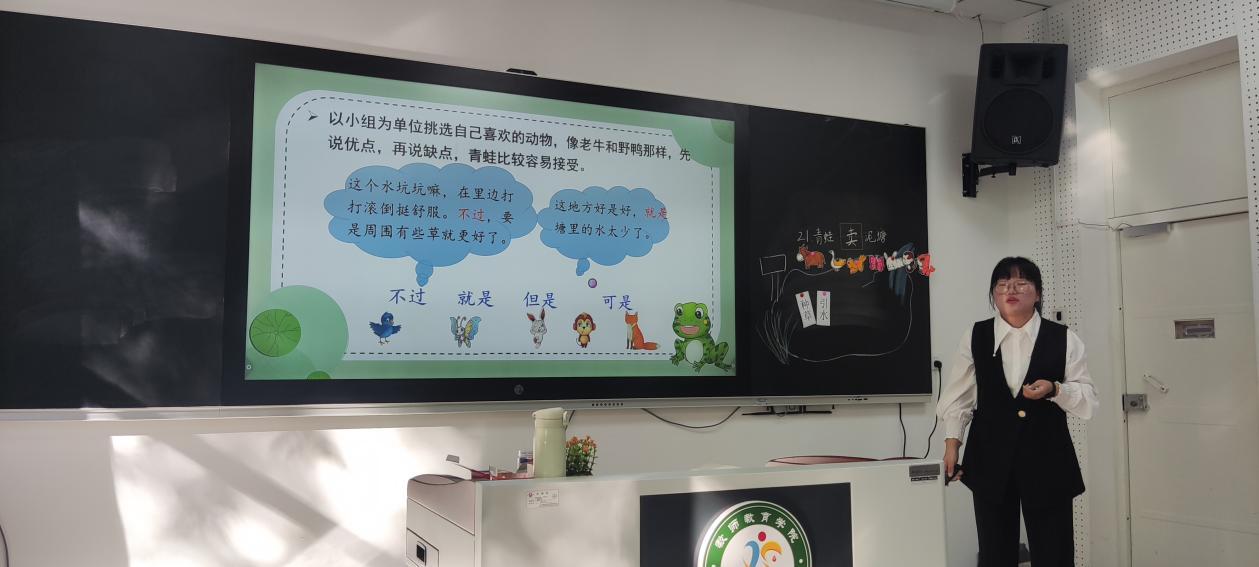 小学教育专业教师团队在初赛前期从研读新课标开始,反复打磨教案、创新教学课件制作、设计结构化板书、教导学生恰当使用教学语言、肢体语言,多角度全方面对学生进行教学指导。