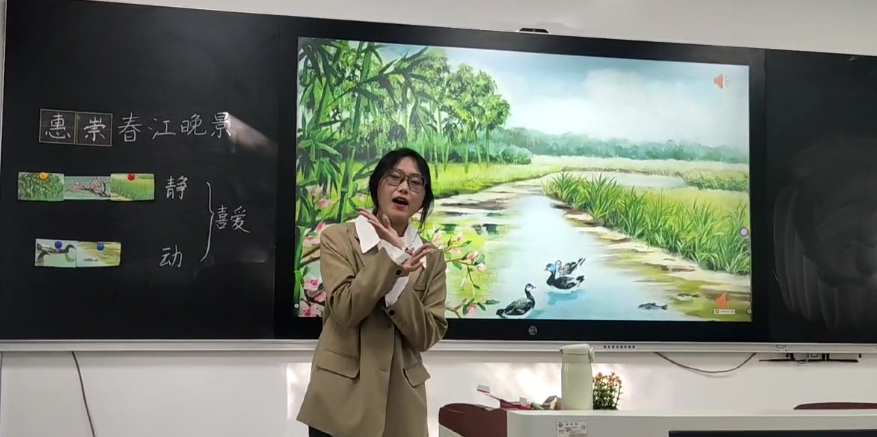 初赛现场,参赛选手从教学设计思路、现场教学两部分进行展示,选手们掌握知识、研读教材、设计教案、驾驭课堂的能力得到了奥林小学潘森老师、陈友智老师嘉宾评委的一致好评,小教系陈元慈老师为参赛选手做了系统指导,最后由小学教育专业负责人杨松柠教授做总结。