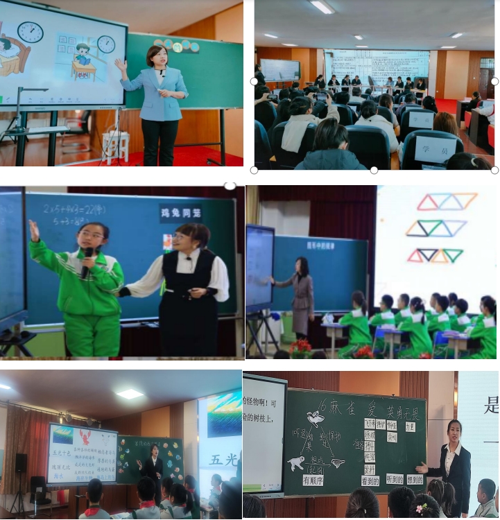 第二阶段:侧重集体教研实践,小学教育专业师生集聚在大庆市让北第一小学和景园小学,分别聆听了冯紫薇校长、周海亮校长、王巍校长等几位校领导讲话,领略了学校文化,观摩了两所学校精心准备的5节公开课和教研活动:让北一小闫绪萍老师执教的三年级《一天的时间》,王思博老师执教的三年级《富饶的西沙群岛》,郑洪萌老师执教的四年级《麻雀》,于宏老师代表让北一小的数学教研团队做了《用课堂观察,做深度研课》的微讲座;景园小学霍岩老师执教的五年级《鸡兔同笼》和莫莉花老师执教的五年级《图形中的规律》及多位老师的评课、现场教研等活动。