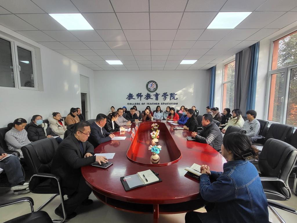 2024年2月29日上午,副校长许双毅到教师教育学院宣布学校党委关于干部任职决定并指导学院新学期工作。会议由学院党总支书记刘国清主持,班子成员、全体教职工参加会议。
