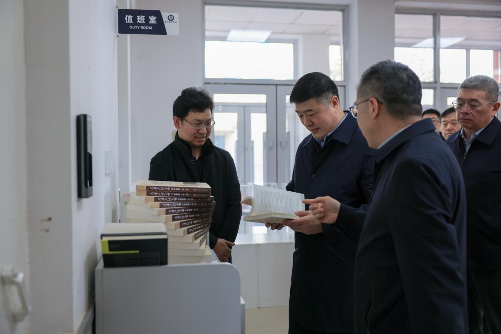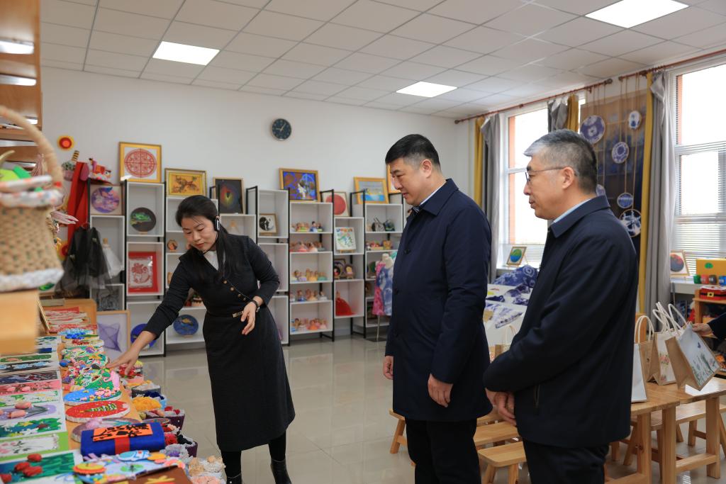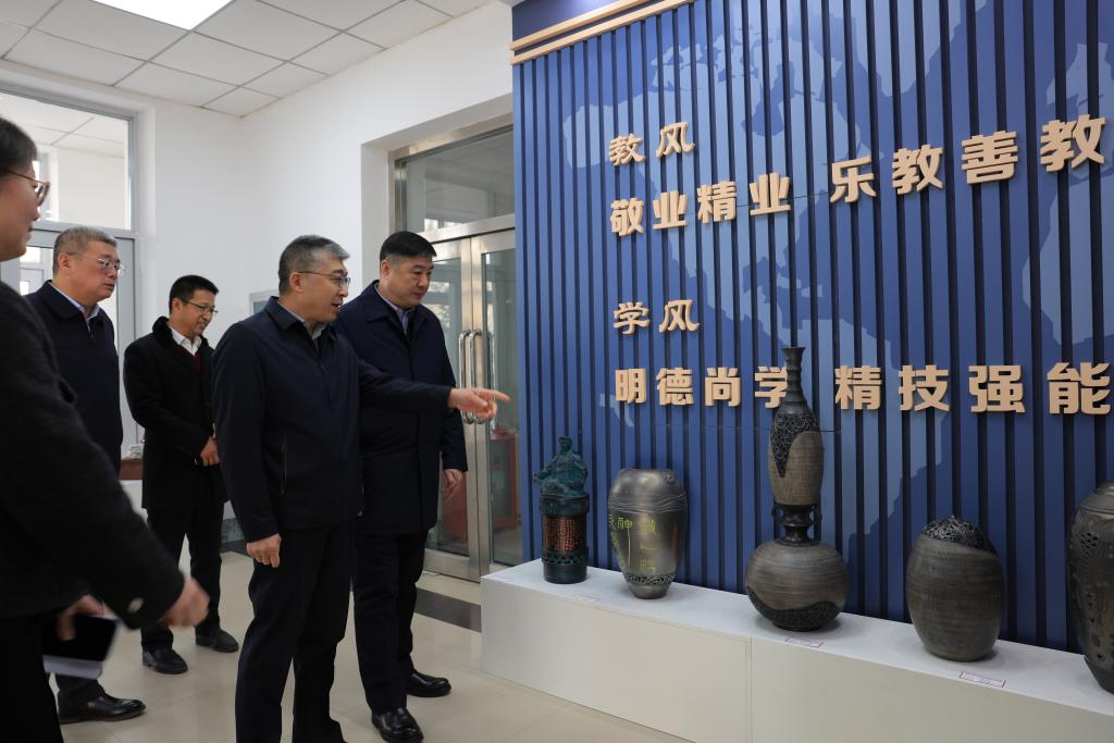 王绪新一行参观了美术与设计学院油陶工艺作品和纸雕创意设计作品展、大庆精神(铁人精神)文献研究成果,听取了教师教育学院院长张晓梅对本院一流建设、各实训室建设、人才培养成果、服务基础教育等方面的情况介绍,随后与学校领导及相关人员进行了座谈。