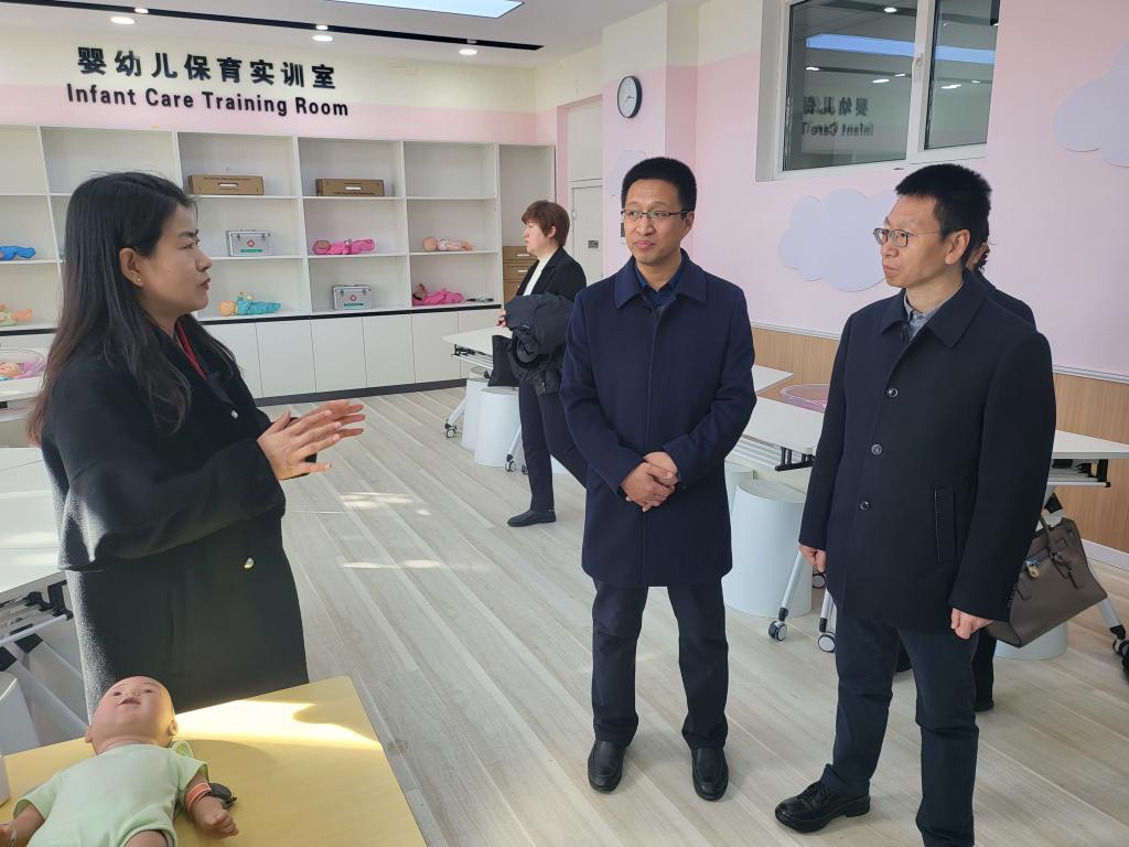 王辉副院长一行参观了实训室,听取了教师教育学院在办学历史、人才培养、服务基础教育等方面的基本情况。双方就人才招聘、实习就业基地建设等事项进行了座谈交流。