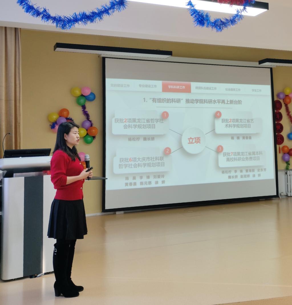 在悠扬的新年序曲音乐声中,院长张晓梅带领大家一起回顾学院五年来的认证之路和2023年工作收获。多少汗水心酸尽在不言之中,灯火一盏,便是彻夜不眠,书籍成山,资料铺成海,屏幕荧光当作夜灯,办公座椅变作小床,艰苦的环境打不倒冲锋的勇士,热爱可抵岁月漫长。不甘落后、团结向上,越是艰险越向前,为未来创新发展集聚更加强大的力量。