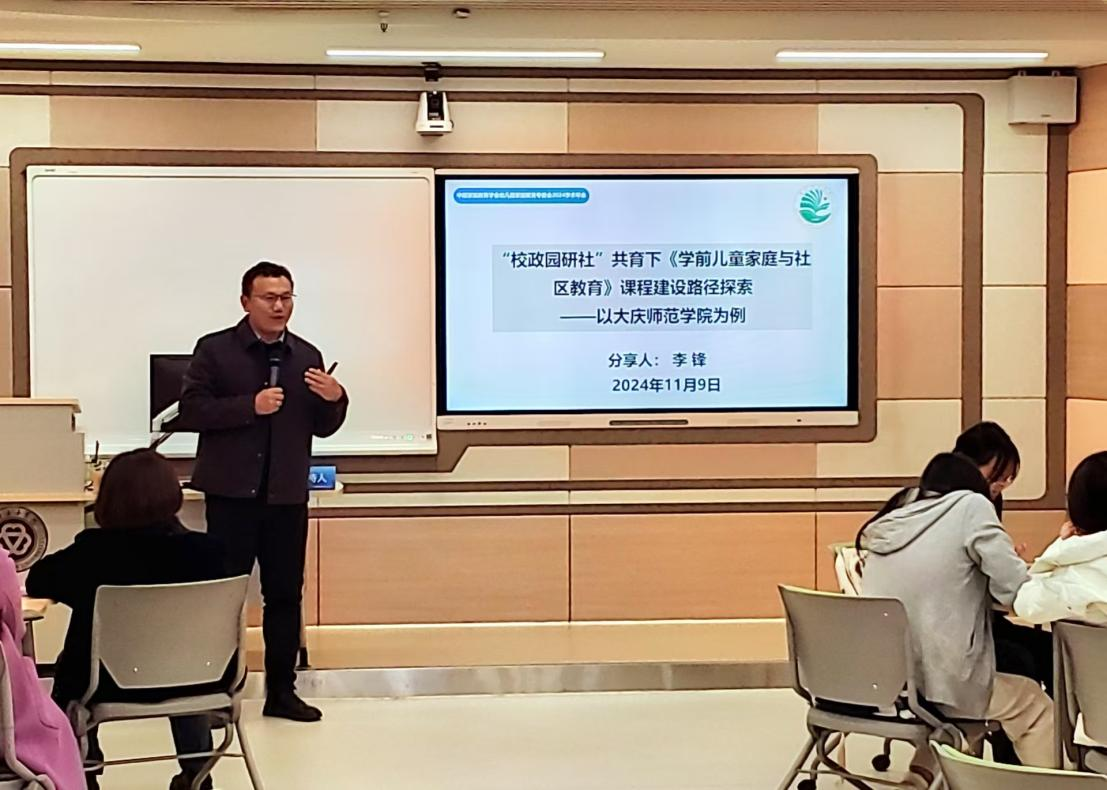 2024年11月9日,我院学前教育专业教师李锋受邀参加中国家庭教育研究会幼儿园家庭教育专委会2024学术年会,做了题为“‘校政园研社’共育下《学前儿童家庭与社区教育》课程建设路径探索——以大庆师范学院为例”学术报告,得到了中国科学院心理研究所李甦教授、中华女子学院科研处处长藏海群教授等专家的认可。