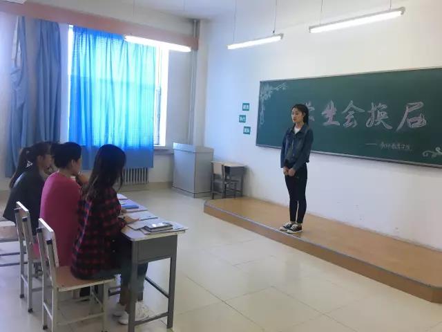 本次换届工作的面试主考官为四人组,参照上图从左到右依次是办公室主任于鑫鑫学姐,学生书记唐美丽老师、新生辅导员孟蝶老师和办公室助理毕媛学姐。高冷却温柔的女神,睿智且风趣的长辈,慈爱而严厉的老师,机灵又可人的邻家学姐。这样风格迥异华丽的阵容是不是很赞?选手们惊不惊喜?心不心动?