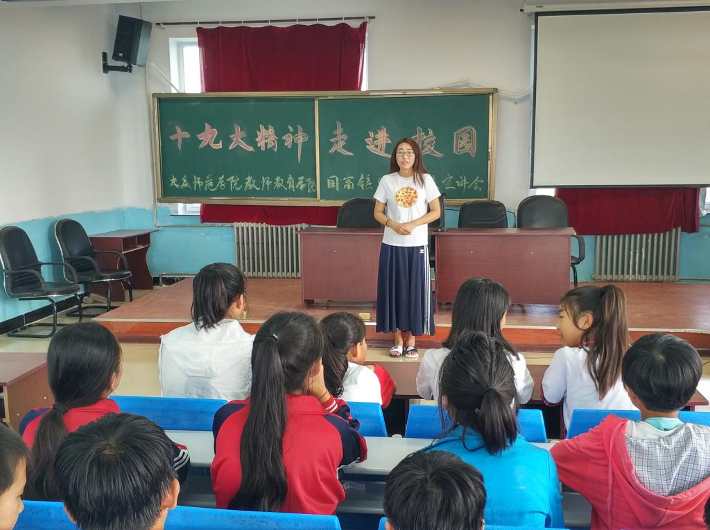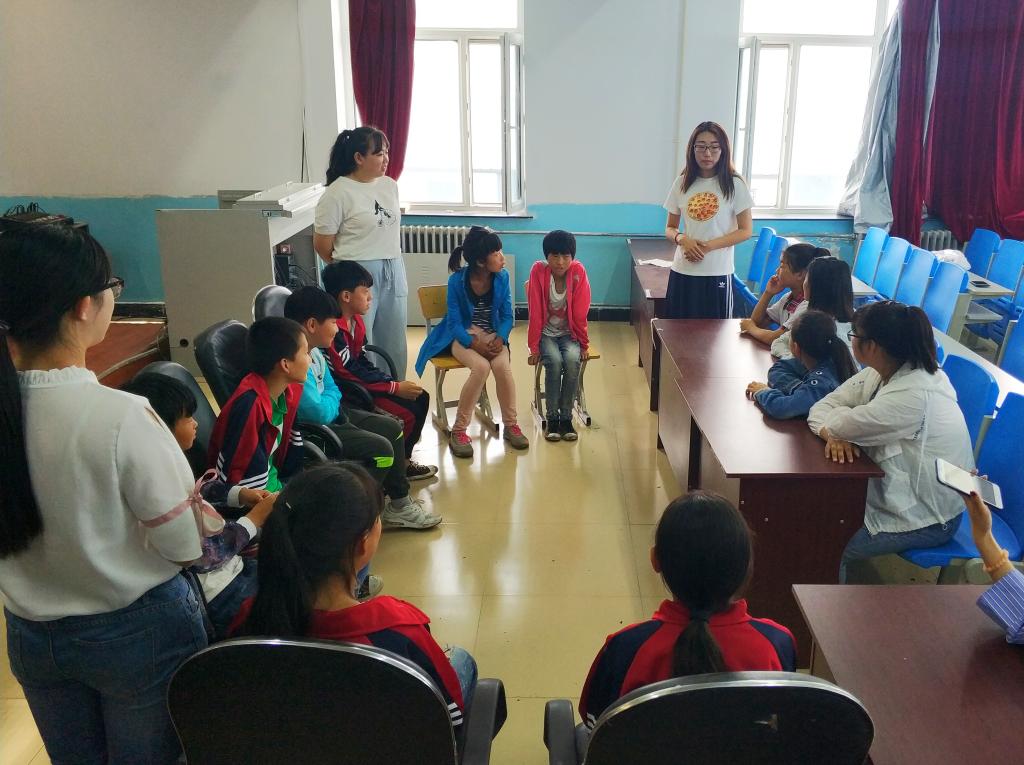 第二幕:教师教育学院“师院暖阳”社会实践团队一行15人,走进国富镇明德学校,围绕学业辅导、感悟十九大、趣味课堂、体育文化等开展关爱活动。通过开展丰富多彩的活动,不仅丰富了孩子们的理想花园,更为他们送去了希望和欢乐。孩子们都说想当老师,想要上大庆师范学院。