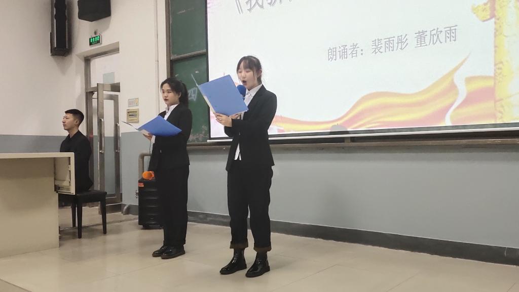 大风泱泱,大潮滂滂,中华儿女当自强。裴雨彤、董欣雨同学带来的朗诵《我骄傲我是中国人》字里行间无不传达出身为华夏儿女融入血脉的那份骄傲与自豪。“我为我是中国人而骄傲”她们将满腔的爱国热情融入锐意进取的灼灼目光,将砥砺前行的执着意志封存在慷慨激昂的誓词里。