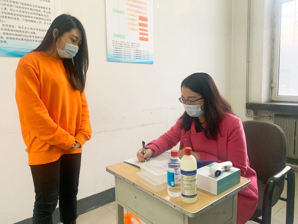 上课期间,同学一旦出现感冒发烧等症状会立即被上报给任课老师,就近送入我院隔离室隔离,第一时间为疑似患者佩戴口罩,上课班级进行消毒处理,同时由老师询问和记录情况并与学校联系,配合社区安排转运就诊救治。