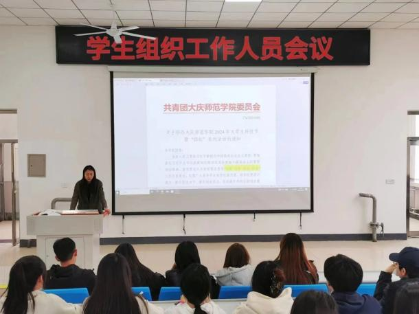 为加强我院学生组织能力建设,规划好近期学生组织的工作方向,高效有序地推进我院各项工作,更好地服务我院师生,我院于4月15日12:30在系楼阶梯教室召开了学生组织工作人员会议。此次会议由我院辅导员孟蝶老师主持召开,各班班长、团支书、主席团及各部门部长参加。