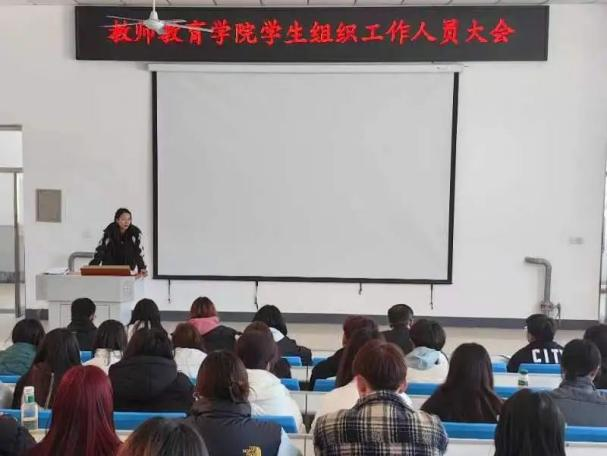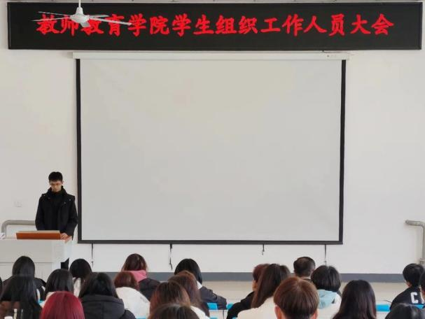 为加强我院学生组织及能力建设,规划好新学期学生组织的工作方向,高效有序地推进新学期的各项活动,更好地服务我院师生,我院于3月6日12:00在系楼阶梯教室召开了春季学期学生组织工作人员培训会。此次会议由我院辅导员孟蝶老师主持召开,党总支副书记房业勇老师和辅导员郗亚凡老师出席本次会议,我院全体学生组织工作人员参加。