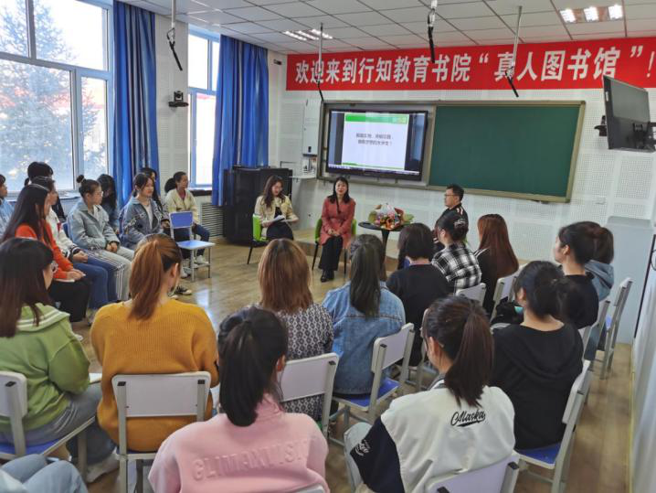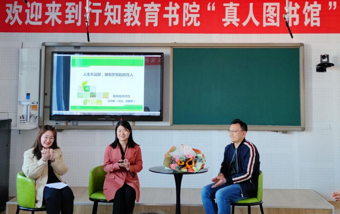 春风习习的四月,伴随着温和的日光,任由微风轻轻翻动书页,教师教育学院行知教育书院霁研悦书会承办的“真人图书馆”活动拉开了序幕,教师教育学院院长张晓梅博士作为图书馆的第一本“真人书”,和同学们进行了面对面热烈的互动和交流。