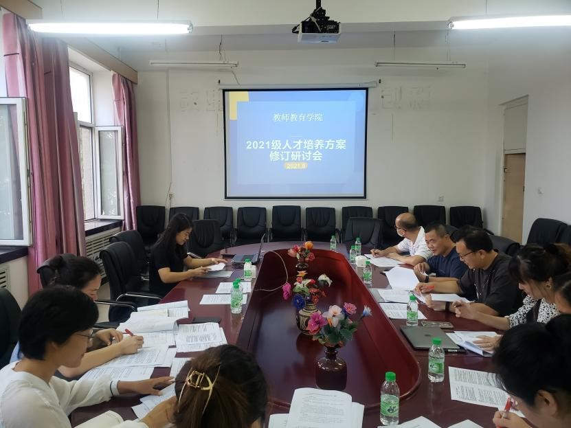 为规范我院人才培养方案修订工作,切实保证人才培养质量,深入落实《大庆师范学院关于修订2021级本科专业人才培养方案的指导性意见》,教师教育学院从7月20日开始,在一个月的时间内相继开展了人才培养方案修订问卷调研、线上会议研讨等工作,并于8月24日下午2点在六教215会议室,召开了“2021级人才培养方案定稿审核会”。会议由教师教育学院院长张晓梅主持,学院党总支书记刘国清、副书记高巍、教学副院长杨松柠以及各系部主任、部分骨干教师参加了会议。