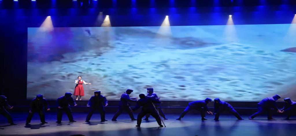我院徐瑶老师编创的舞蹈作品《薪火•花开处》、舞台剧作品《铁人颂》、歌伴舞作品《踏着铁人脚步走》被选为启动仪式展演作品。课程实践是艺术育人的“基石”,在推普周展演与主题舞蹈创作中均发挥着关键作用。徐瑶老师通过课程思政、舞蹈职业技能训练、第二课堂艺术实践等多方面的课程改革与建设,提高了学生的舞蹈核心能力、拓宽了舞蹈美育视野。如:舞蹈作品《薪火•花开处》,不仅通过肢体的表现与队形的变化,具象化“语言传递知识、沟通心灵”的内涵,更通过肢体与黑板的接触,表现“薪火传承”的意象,呼应“教育赓续”的主题;《铁人颂》则在语言艺术与舞蹈艺术相融合的实践中,碰撞出刚劲有力的动作语汇,刻画出铁人精神的坚毅底色。《踏着铁人脚步走》则深度挖掘“艰苦奋斗、无私奉献”的铁人精神,让舞蹈成为红色精神的鲜活载体,实现艺术审美与价值引领的同频共振。