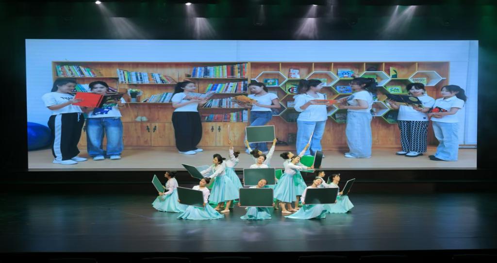 拓展成长维度,让艺术实践更显活力。第二课堂是艺术育人的“延伸场”,为学生搭建了从课堂到舞台的成长桥梁。通过艺术展演、专项排练等第二课堂活动,学生在课余时间自主打磨节目,在团队协作中提升普通话沟通能力与舞台表现力,最终以青春活力的群舞表演,为推普周注入“年轻态”传播力,扩大活动影响力。依托红色主题创作工作坊、舞蹈大赛等第二课堂平台,学生深度参与《薪火•花开处》等作品的创编,自主调研文化背景、碰撞创意火花,让舞蹈从“课堂练习”升级为“精神名片”,也让自身的艺术创作力与文化理解力在实践中得到全面提升。