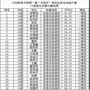 结合各位评委多维度的打分结果,第一届“书院杯”师范生职业技能大赛第二阶段“口语表达”决赛的获奖人员名单出炉啦!