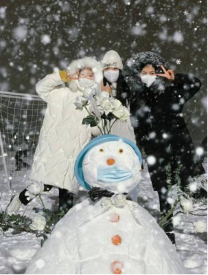 走在冬季的校园里,这里的雪人随处可见。同学们堆的雪人各种各样,有插满鲜花的浪漫雪人,有带着有“书香味道”字样的帽子雪人,还有有着“发光心脏”的爱心雪人,它手捧着爱心,那是我爱你的心。