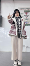 身着大花袄配着黑色加绒裤
