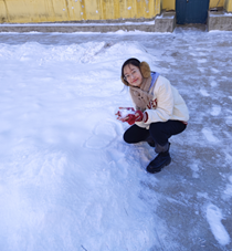 与暖和的红手套相映衬