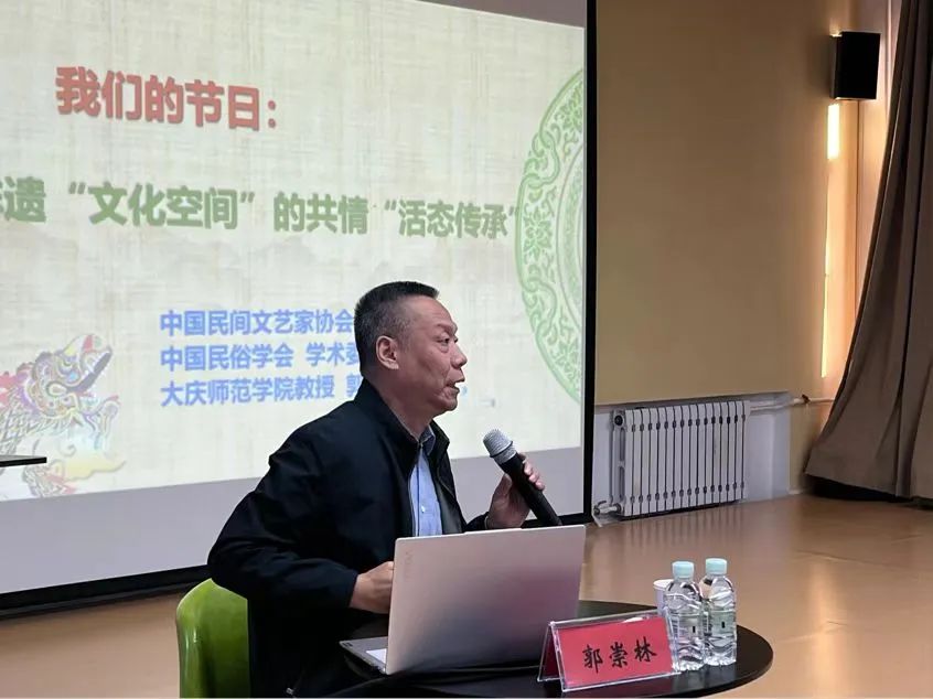 接着,郭教授强调传承非遗文化必须具备一定的能力。首先,要有敬畏之心,尊重每一项非遗技艺和文化内涵;其次,要用心感受,深入理解非遗背后的民俗、历史背景;最后,要广泛学习,通过研究不同地区、不同类型的非遗案例来拓宽视野,提升对非遗的理解。鼓励我院学子要在实践中传承传统文化,并不断反思总结经验,让文化在传承中创新。