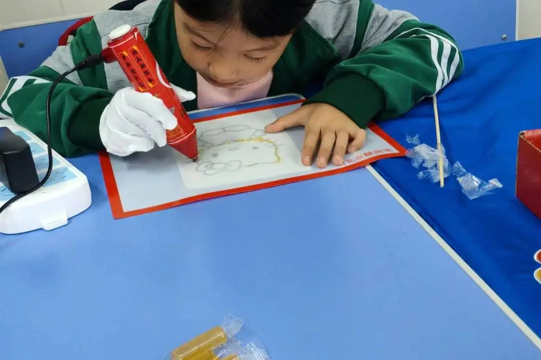 从每一项非遗历史起源到发展现状,从每一个视频讲解到动手制作。课堂上同学们跟随老师,追溯非遗起源,了解非遗文化知识,体验非遗制作。同学们都在老师的耐心指导下,用细心与谨慎对待每一个步骤,同时也在模仿的基础上,发挥自己的想象,创造出独一无二的非遗作品。课堂结束,同学们兴奋地展示着自己的作品,脸上洋溢着满满的成就感和喜悦。每一个参与的同学都亲手触摸到了非遗的温度,体验到了传统文化的乐趣。