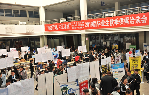 10月24日,我校在图书馆举办“情注百湖,才汇油城”2019届毕业生秋季大型供需洽谈会。