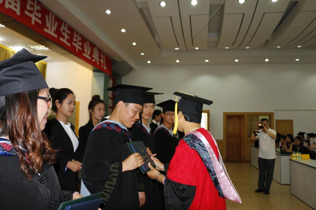 第一项奏国歌之后,王院长亲自为每一位毕业生颁发毕业证和学位证。随后毕业生代表、在校学生代表、教师代表发言致辞,一字字深情的问候、一句句诚恳的祝福、刻骨难忘的四年青春岁月至此画上了终止符。