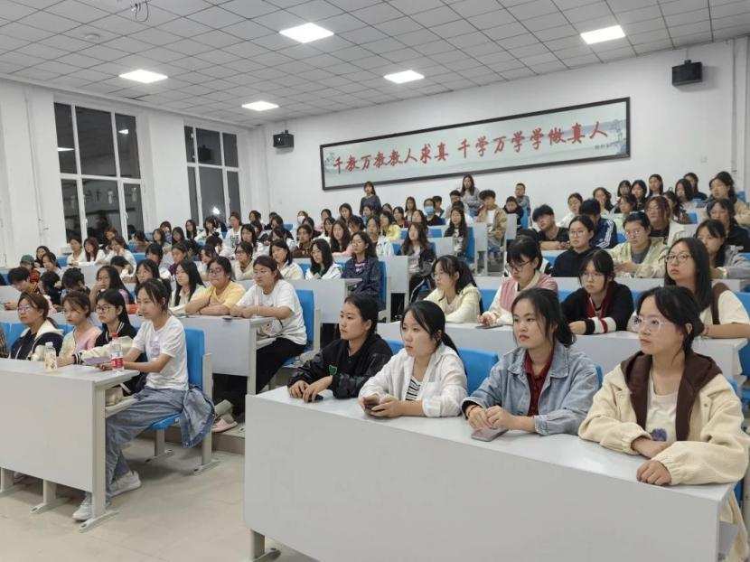 会议伊始,王老师热情的向我院学生讲解了实习、就业相关内容,并就集团的成立初衷、发展历程、整体规划、运营模式、未来规划等进行了详细介绍。此外,她还对大家提出的各类问题给予细致的解答,通过她的讲解,同学们从不同角度对宁波启智伟业教育集团有更深层次的了解,对于即将到来的实习及择业也有了更明确的方向和目标。
