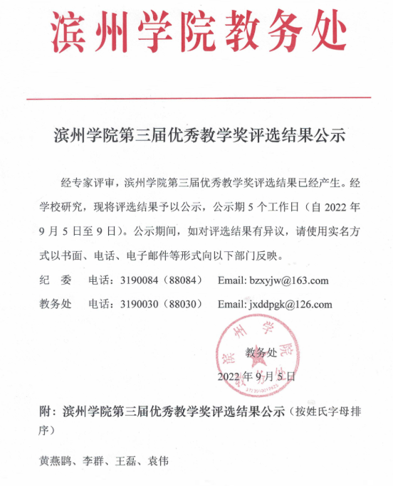 【喜讯】我院李群老师荣获滨州学院第三届优秀教学奖